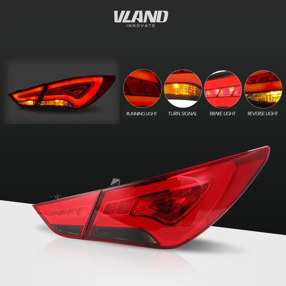 Special Features:Led;Item Diameter:3 inch;For Vehicle Brands/Model:HYUNDAI;Sonata-Year:2014;Sonata-Year:2011;Sonata-Year:2012;Sonata-Year:2013;Hyundai Model:Sonata;Material Type:ABS;Voltage:12V;Brand Name:vland;Item Weight:5.5 kg;Item Type:Tail Light Assembly;External Testing Certification:ISO9001;Model Name:YAB-SNT-0209A;Light Source:LED;Color:Red, Smoke;