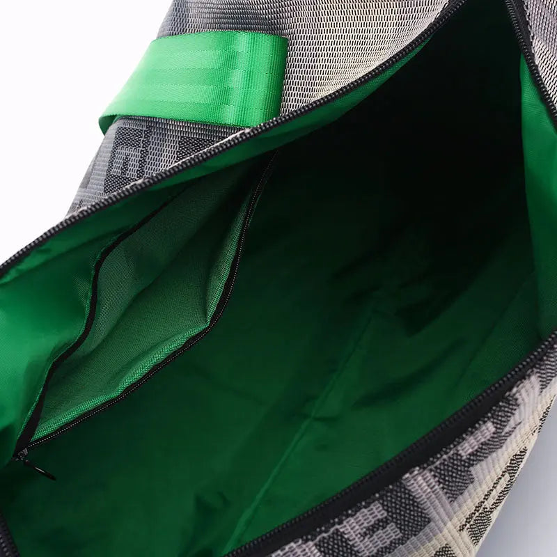 - Sturdy Green Racing Harness style carrying straps