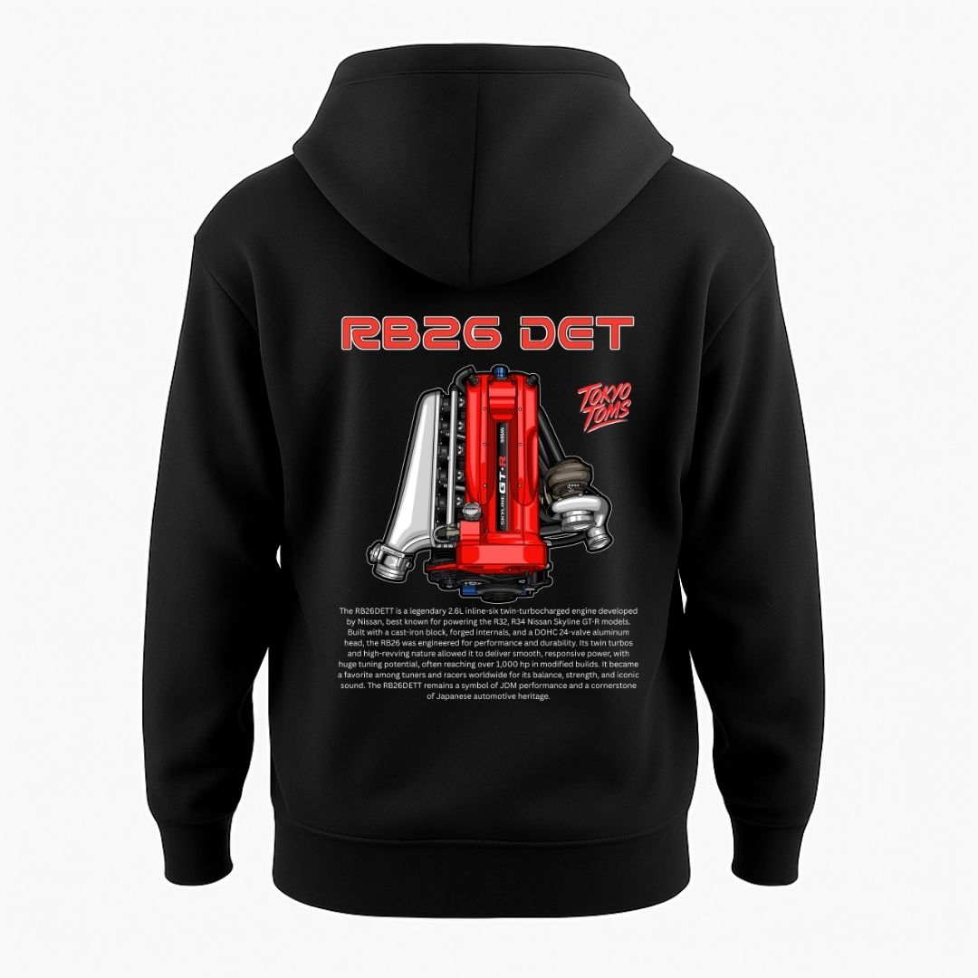 This premium unisex pullover pays tribute to the iconic RB26 DET — the heart of the Skyline GT-R and one of the most revered engines in JDM history.