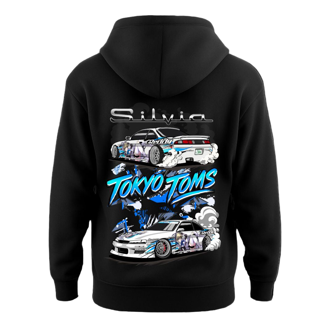 The Tokyo Toms Silvia S14 “Itasha Drift” Hoodie celebrates Japan’s ultimate street fusion — JDM power and anime flair.