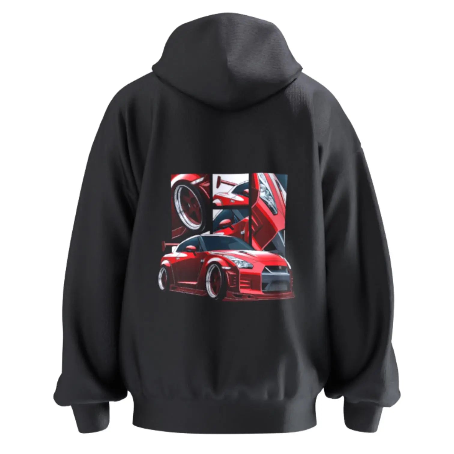 The design features a captivating graphic showcasing the unmistakable silhouette of the Nissan GTR R35, capturing the essence of its racing pedigree and relentless performance. From its aggressive lines to its aerodynamic profile, this hoodie pays homage to the legacy of one of the most iconic sports cars in automotive history.