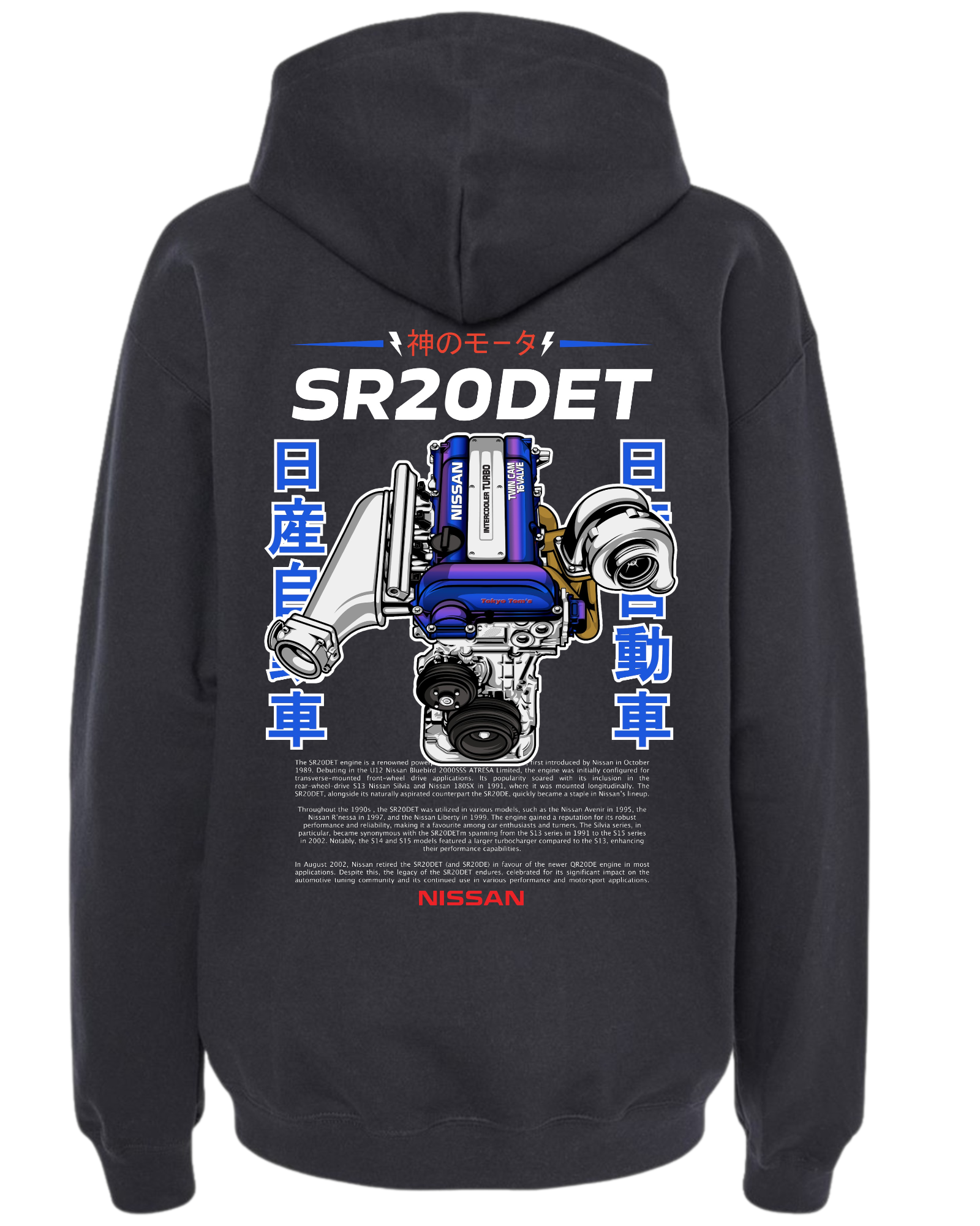 Showcasing a detailed SR20 graphic, it’s the ideal gift or personal pickup for anyone who lives and breathes Japanese car culture. This hoodie is more than just apparel—it's a statement of boost, balance, and legendary Nissan engineering.