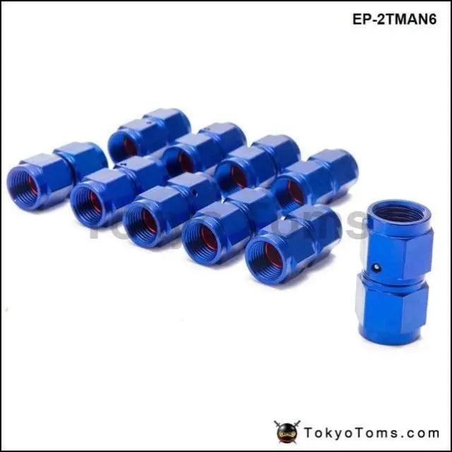 10Pcs/Set Blue An6 Universal Fuel Oil Fitting Aluminum Hose End Adaptor 2 Side Female Fitting