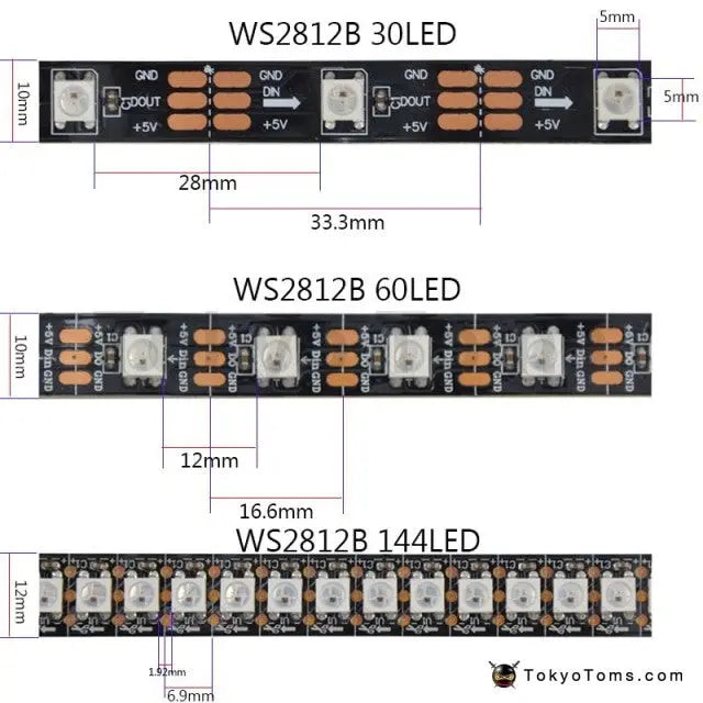 Waterproof Individually Addressable LED Strips - DC5V 1m/2m/3m/4m/5m WS2812B 30/60 Leds/m Smart Led Strip Black PCB WS2812 IC