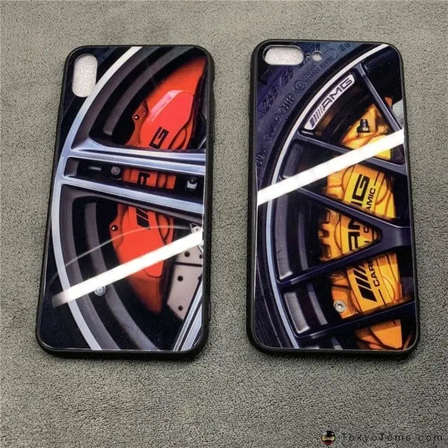 Luxury Racing Car Wheel Brake disc Glass Case for iPhone X Xs Max Xr 8 7 6 6S Plus Motorsport AMG Wheel hub pattern Cover Coque