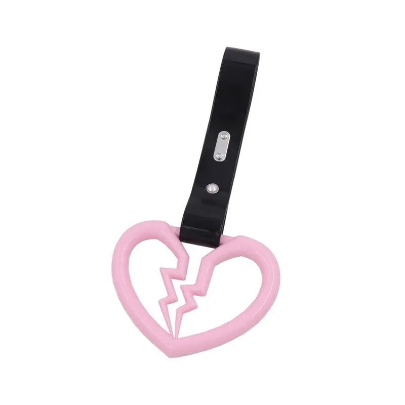 Pink Broken Heart Tsurikawa Black PVC Strap