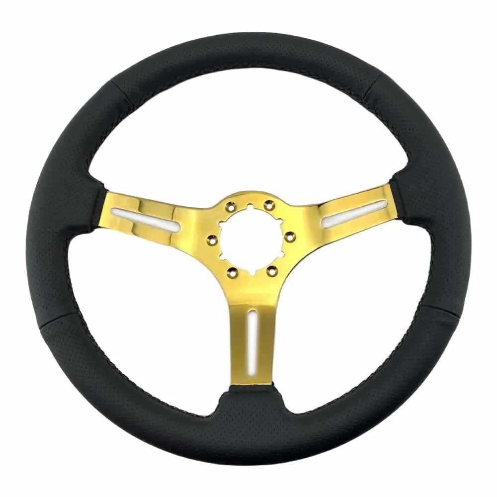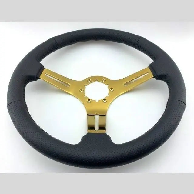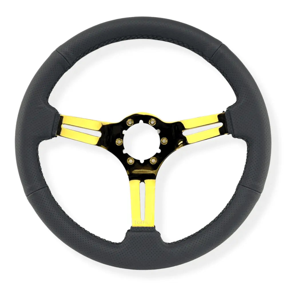 Tomu Fuji Black Perforated Leather with Gold Spoke Steering Wheel