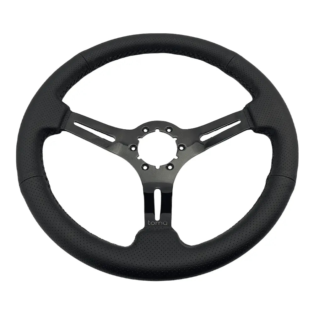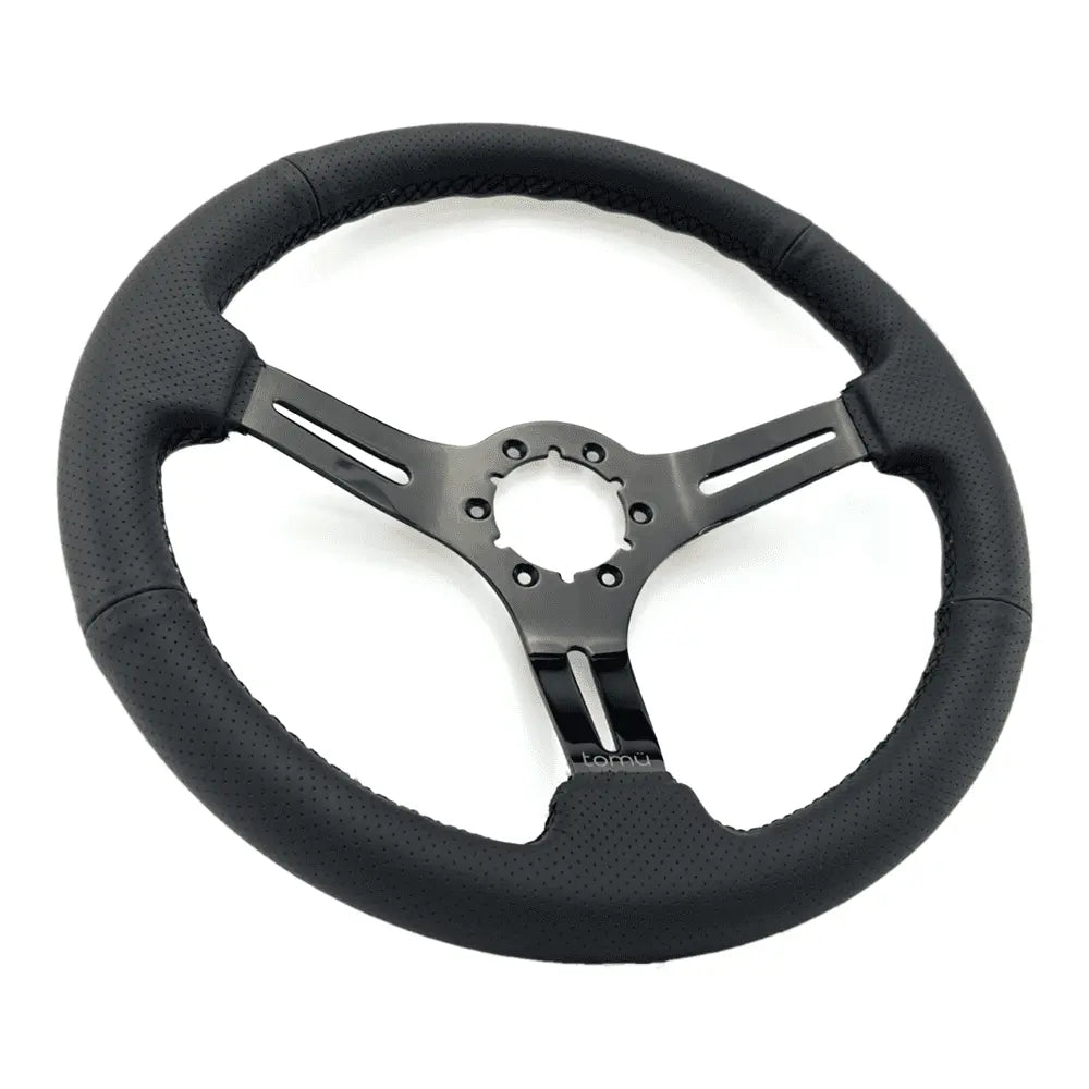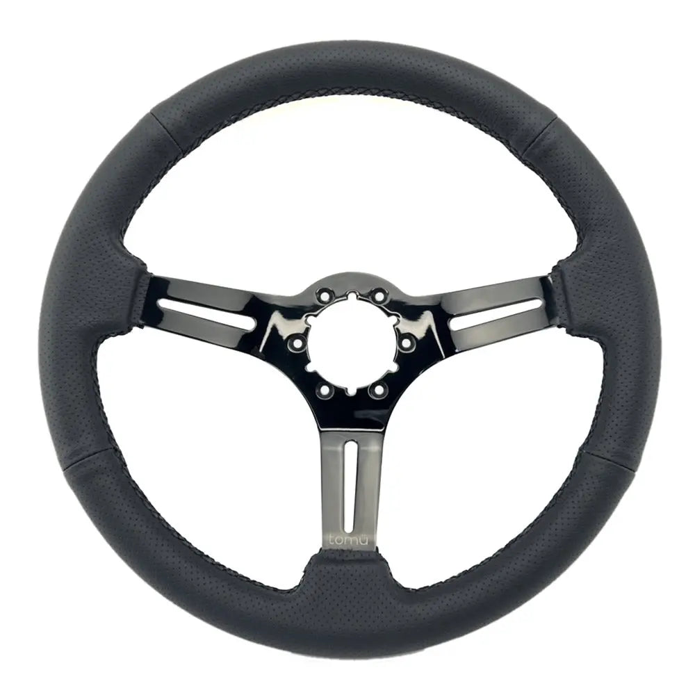 Tomu Fuji Black Perforated Leather and Black Mirror Chrome Spoke Steering Wheel