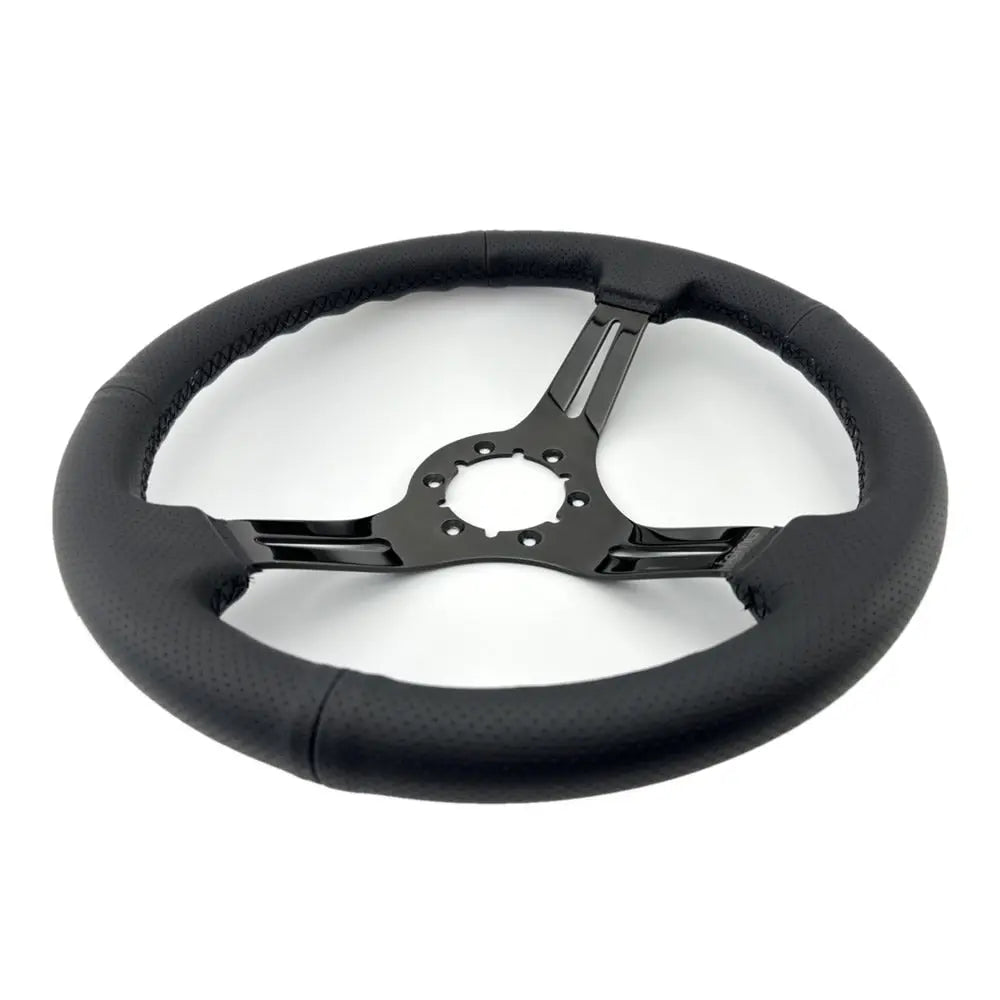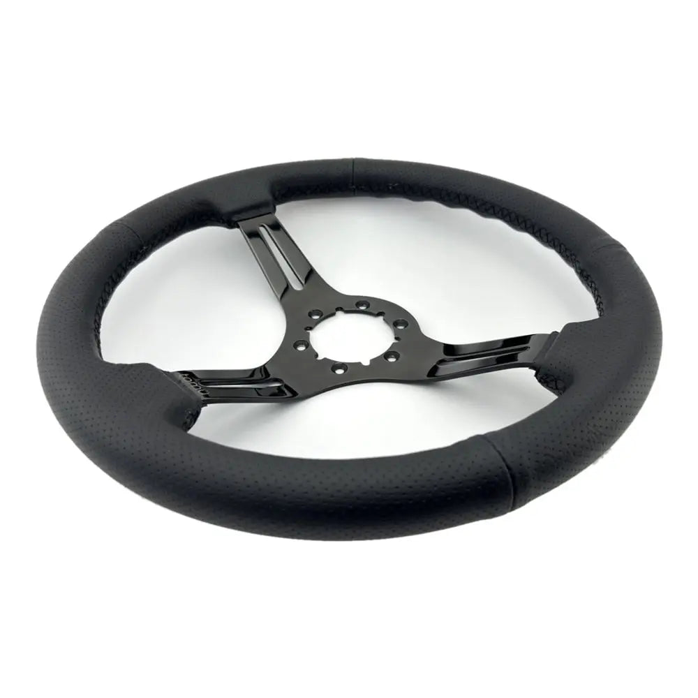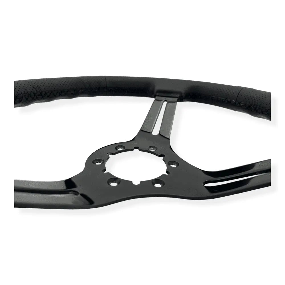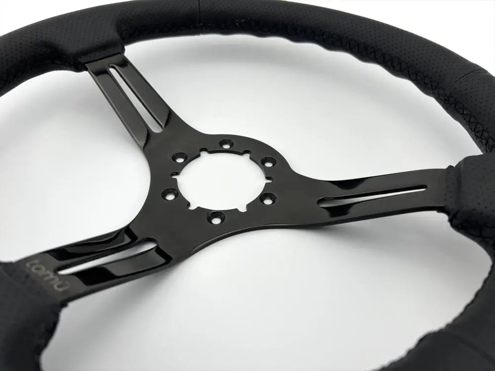 Tomu Fuji Black Perforated Leather and Black Mirror Chrome Spoke Steering Wheel