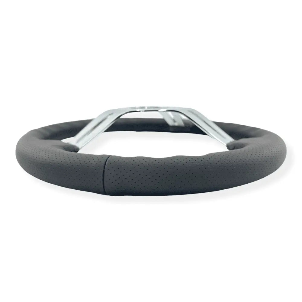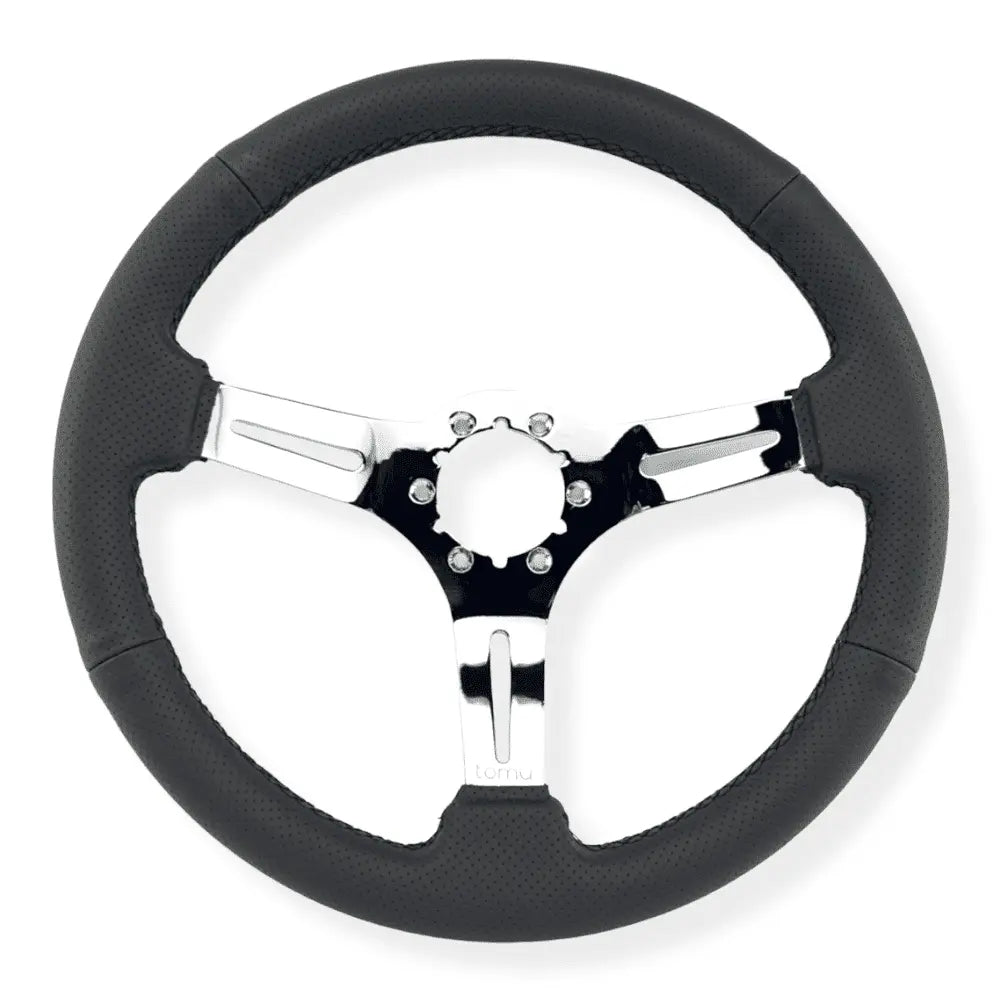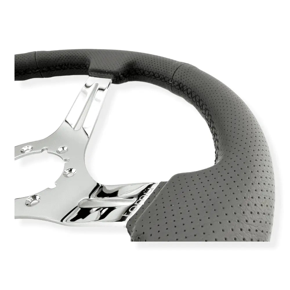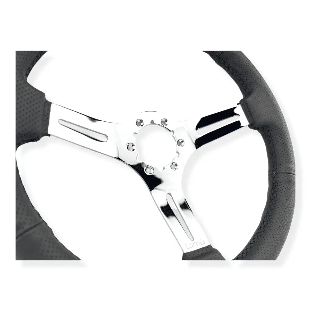 Tomu Fuji Black Perforated Leather and Chrome Spoke Steering Wheel