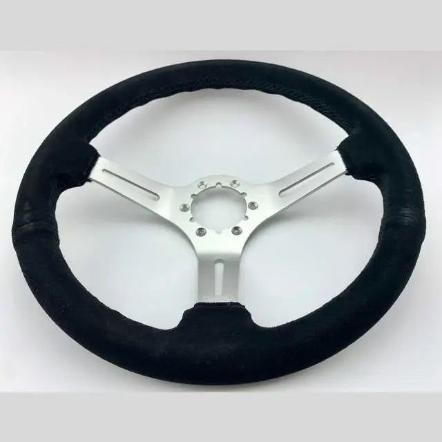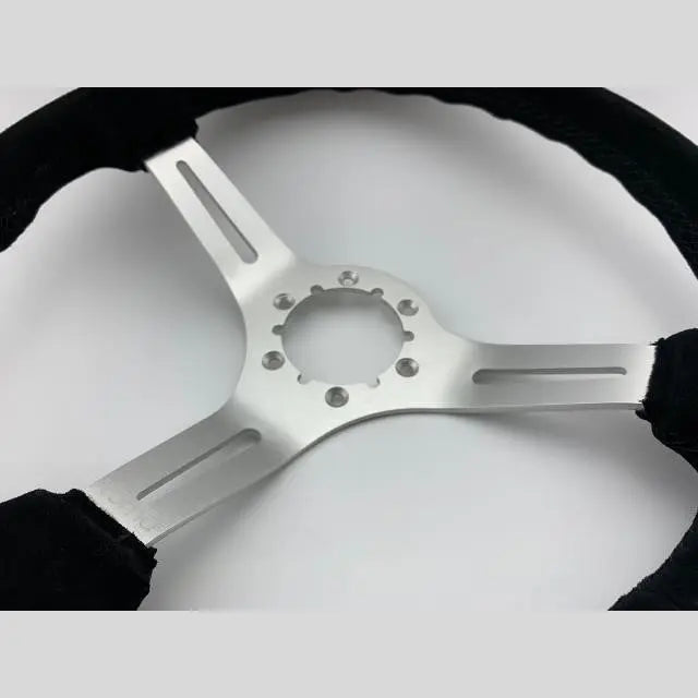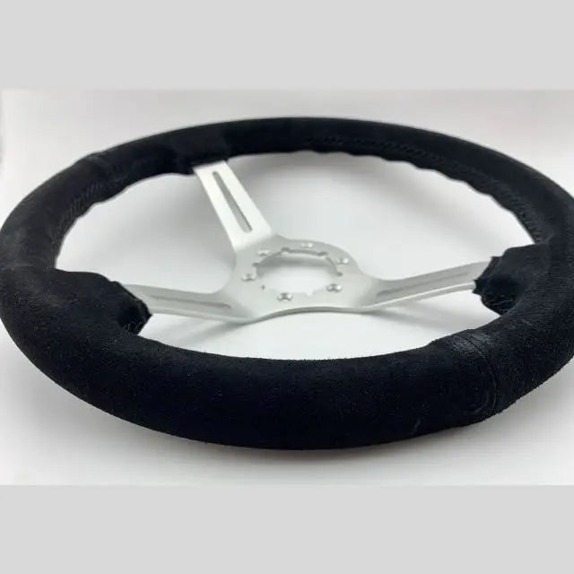 Tomu Akagi Black Suede and Silver Alloy Steering Wheel