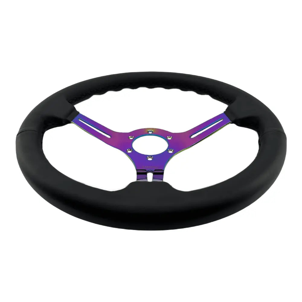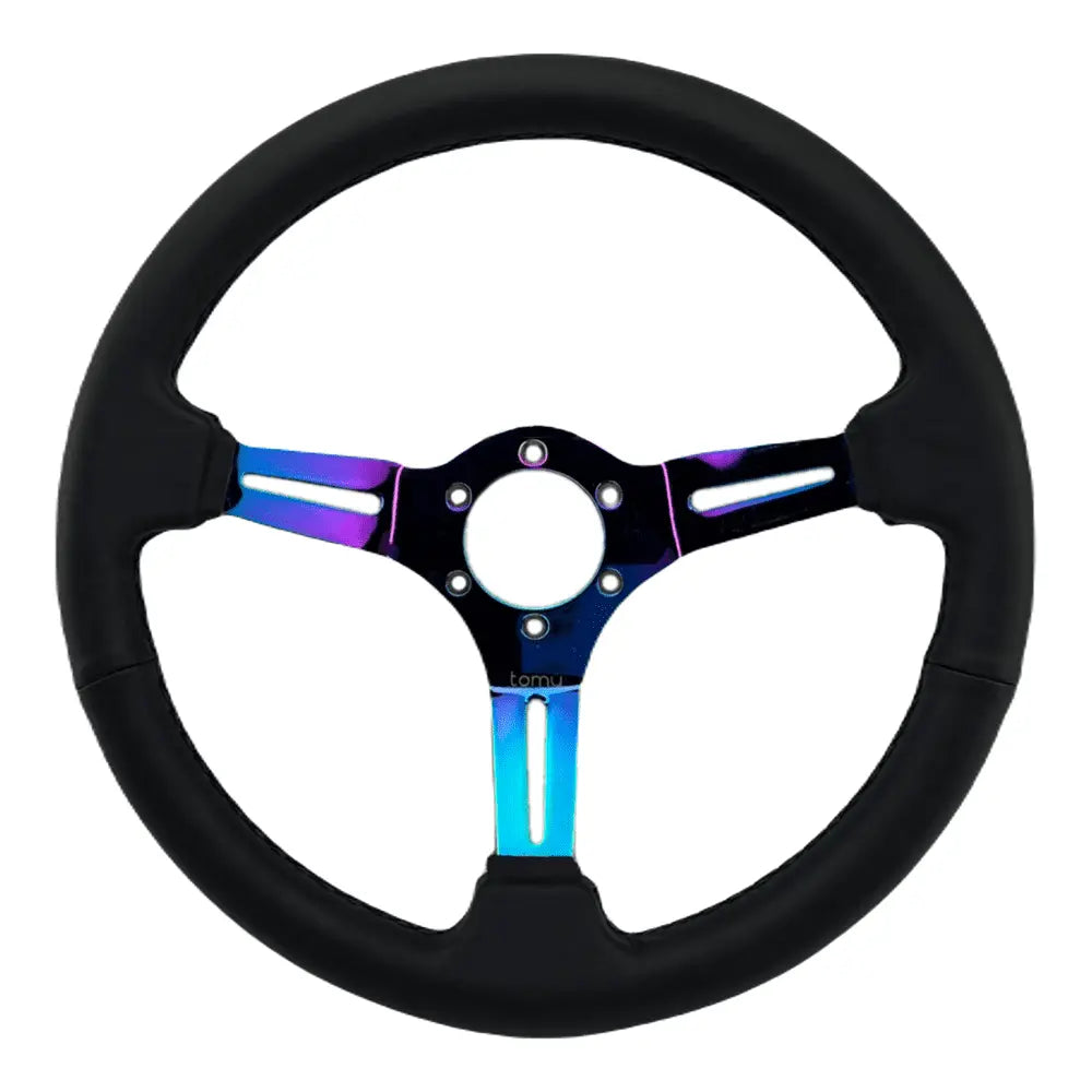 Tomu Tsukuba Black Leather with Neo Chrome Spoke Steering Wheel