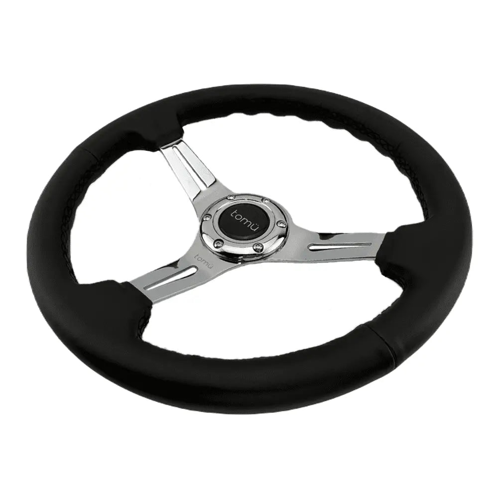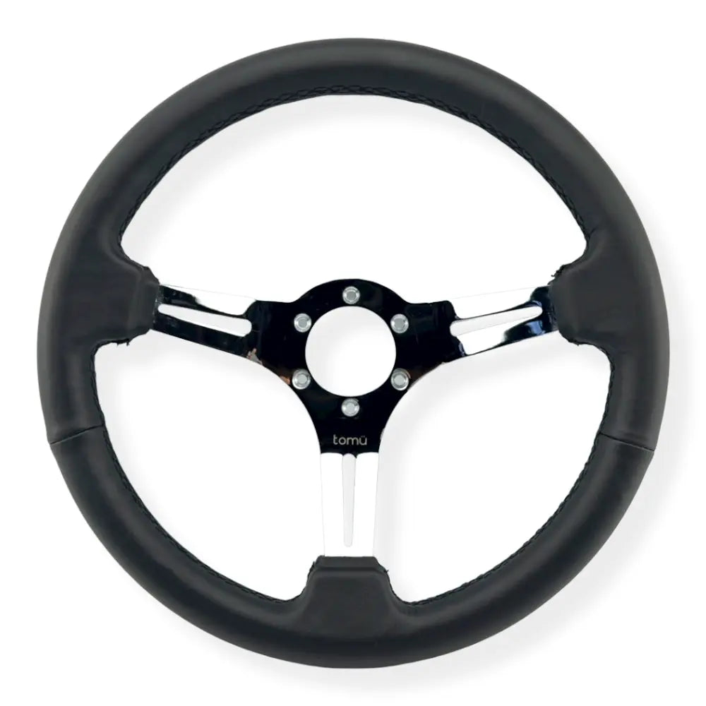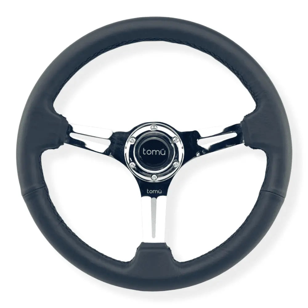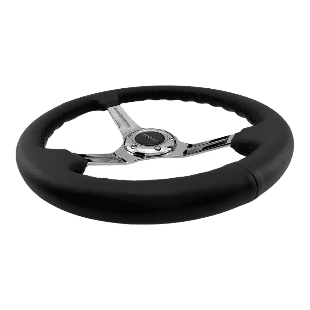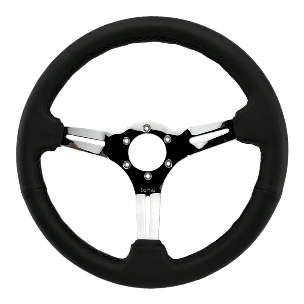 Tomu Tsukuba Black Leather with Mirror Chrome Spoke Steering Wheel
