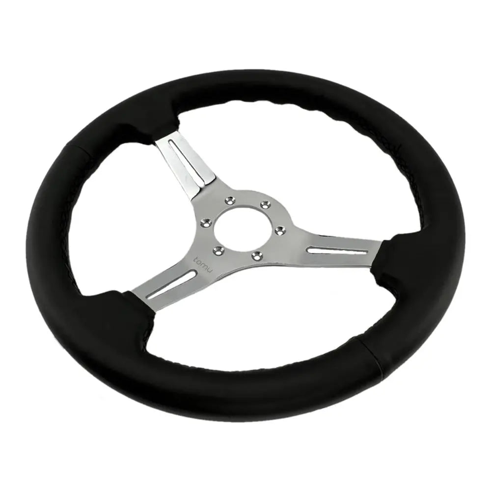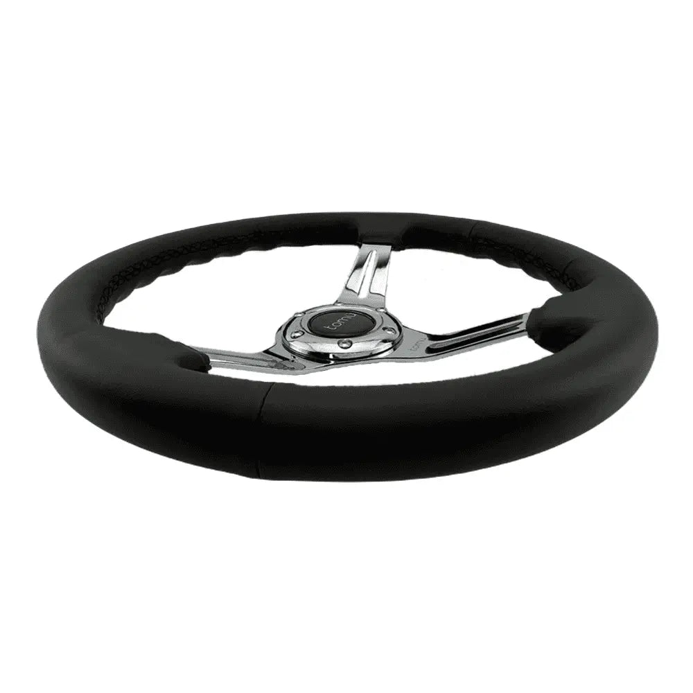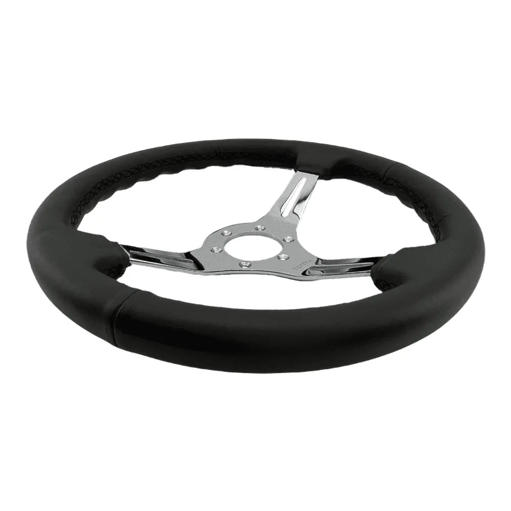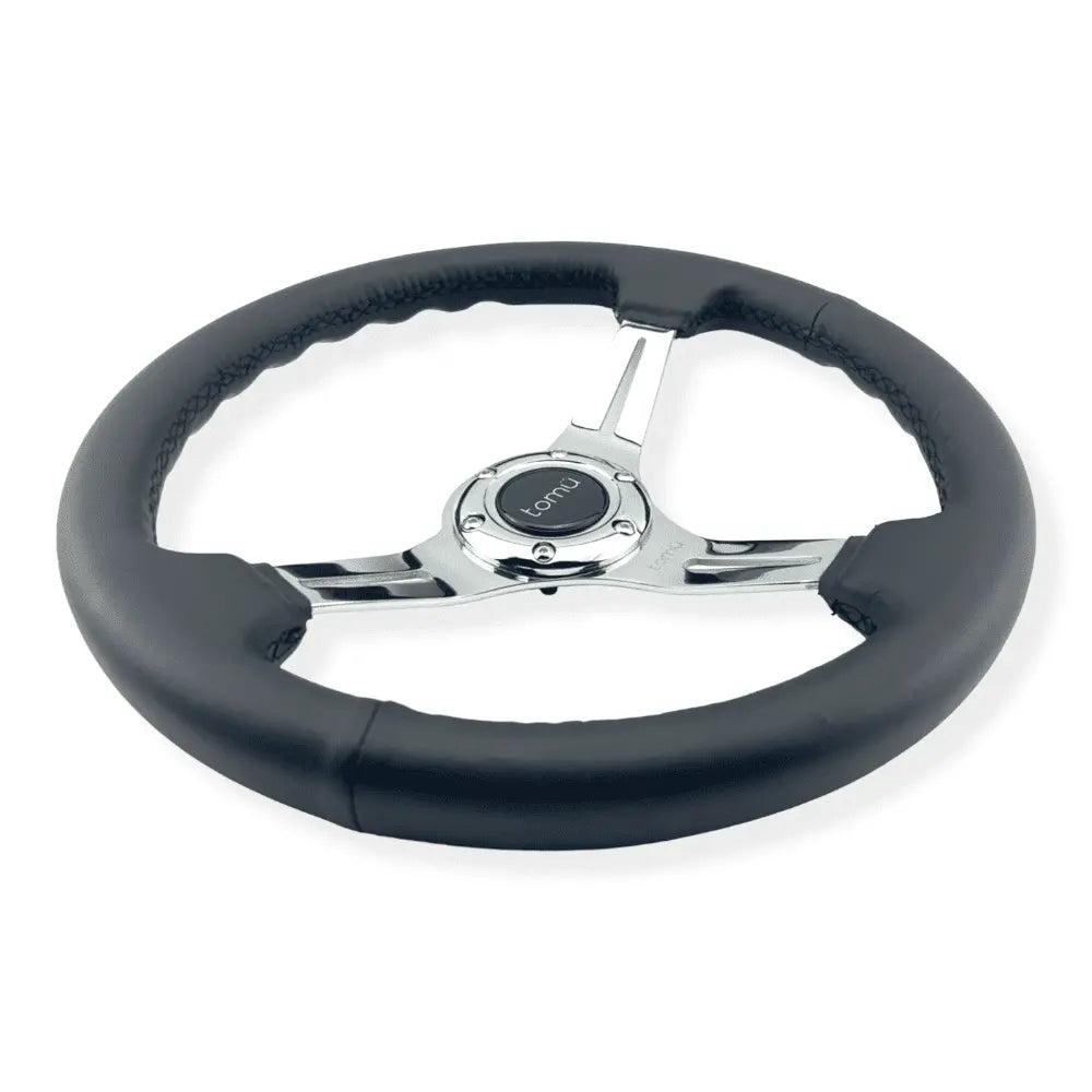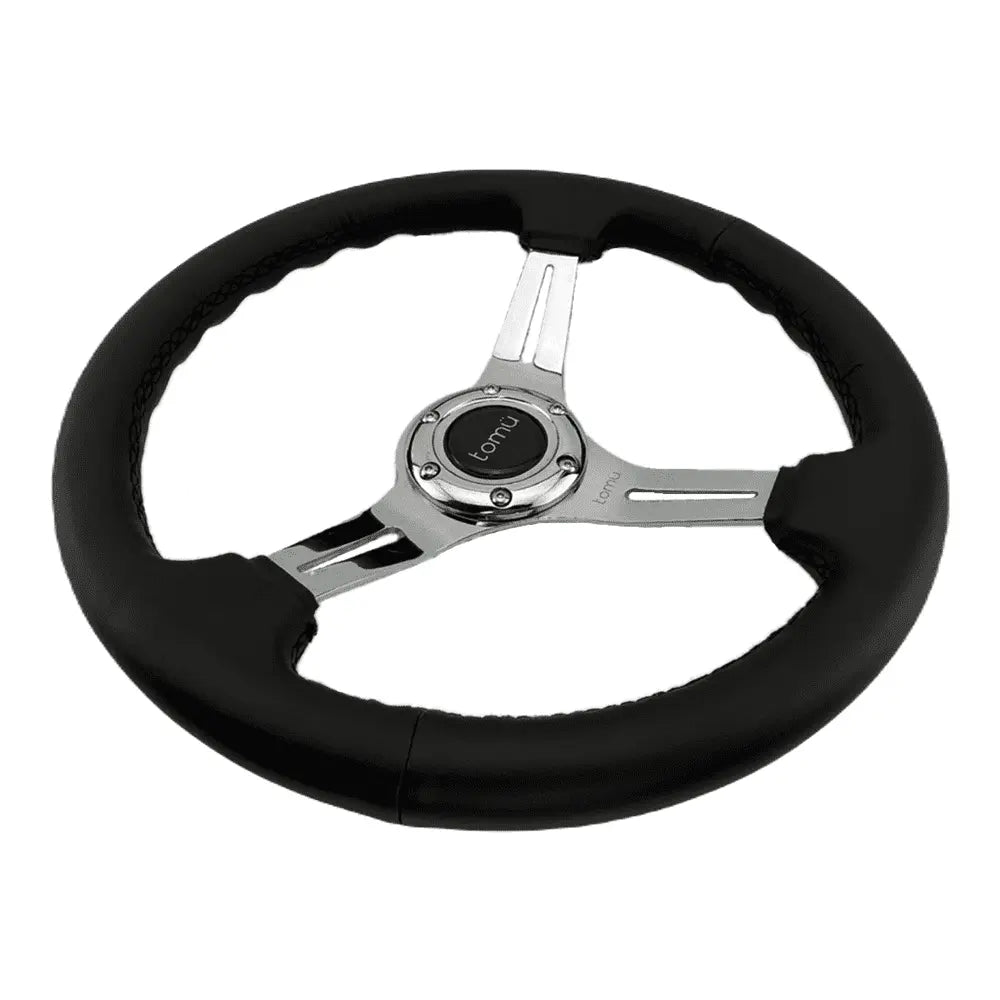 Tomu Tsukuba Black Leather with Mirror Chrome Spoke Steering Wheel