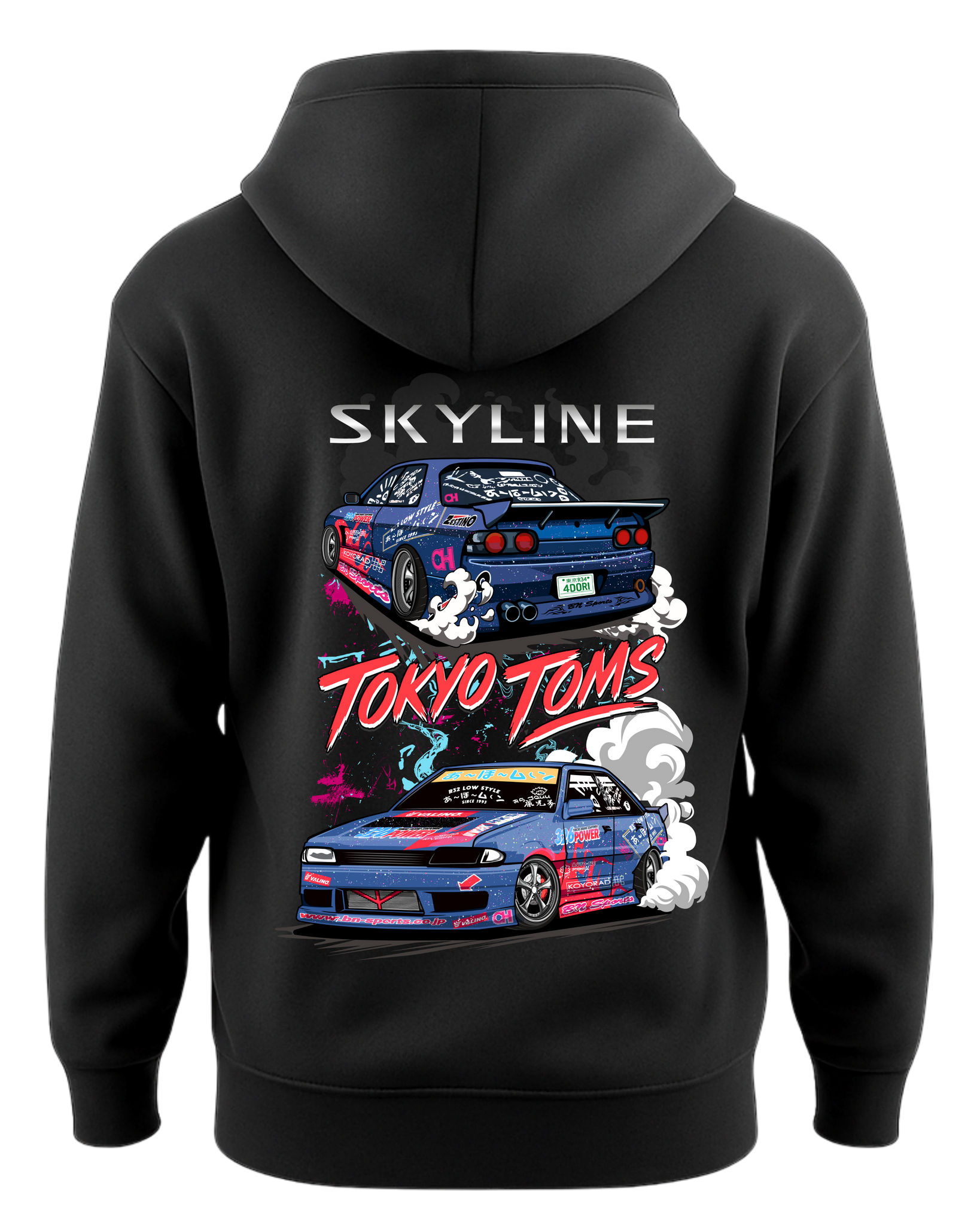 The bold Tokyo Toms logo and SKYLINE header complete the look — pure street, pure attitude.