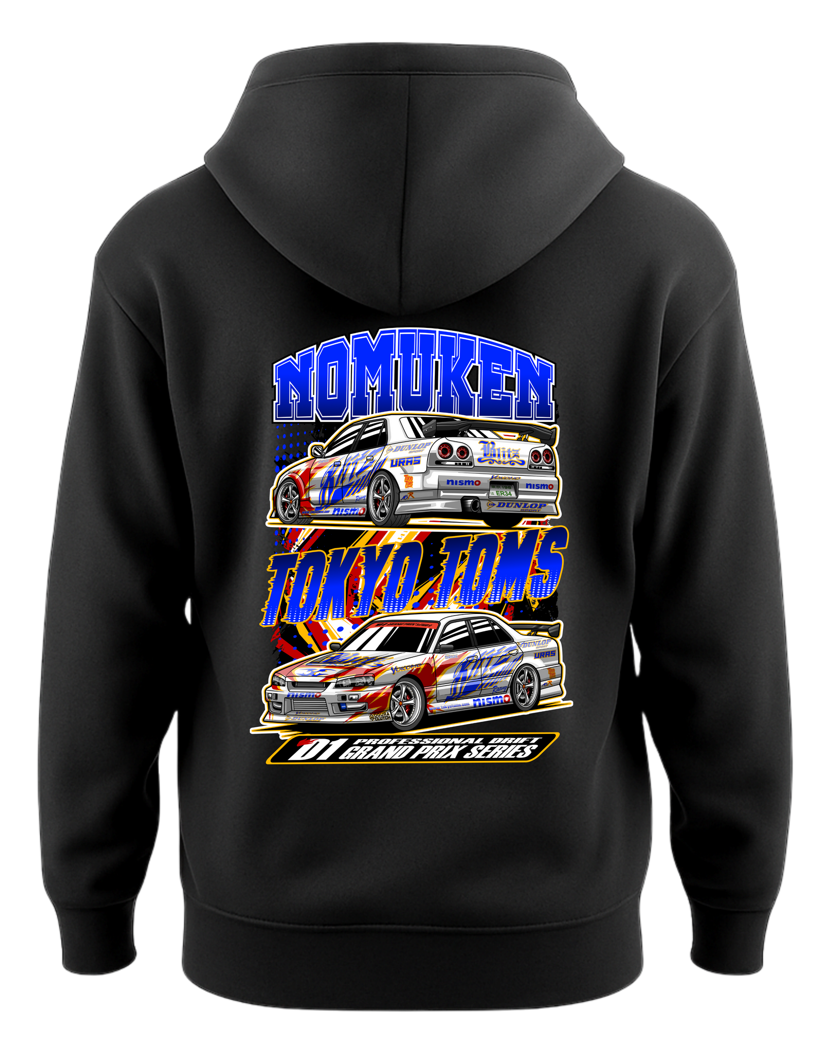 Unleash the power of D1 legends with the Tokyo Toms Nomuken D1 GP Skyline Hoodie.