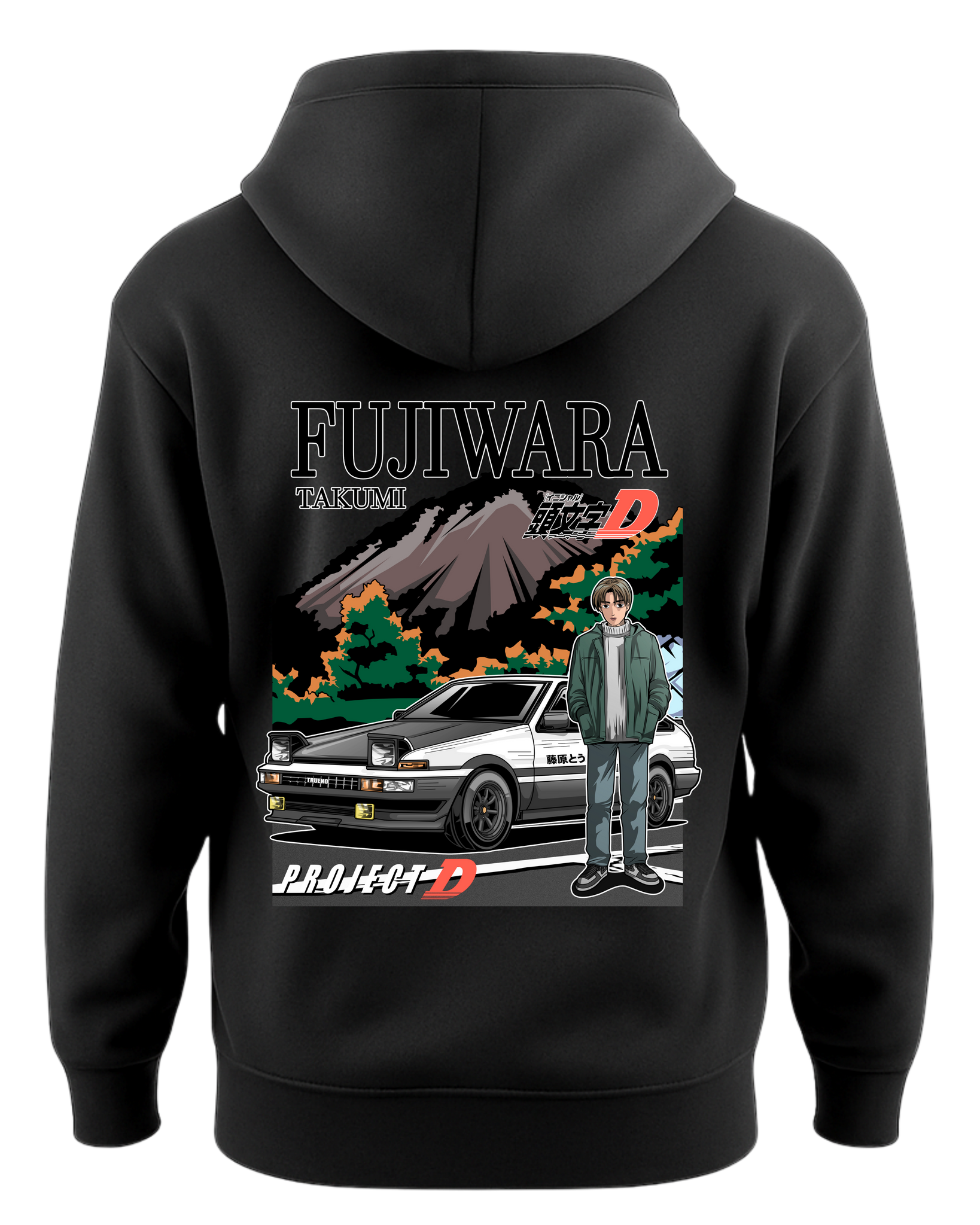 Step into the world of Project D with the Tokyo Toms Initial D “Fujiwara Takumi Project D” Hoodie — a tribute to the mountain king of Akina and his legendary Toyota AE86 Trueno.
