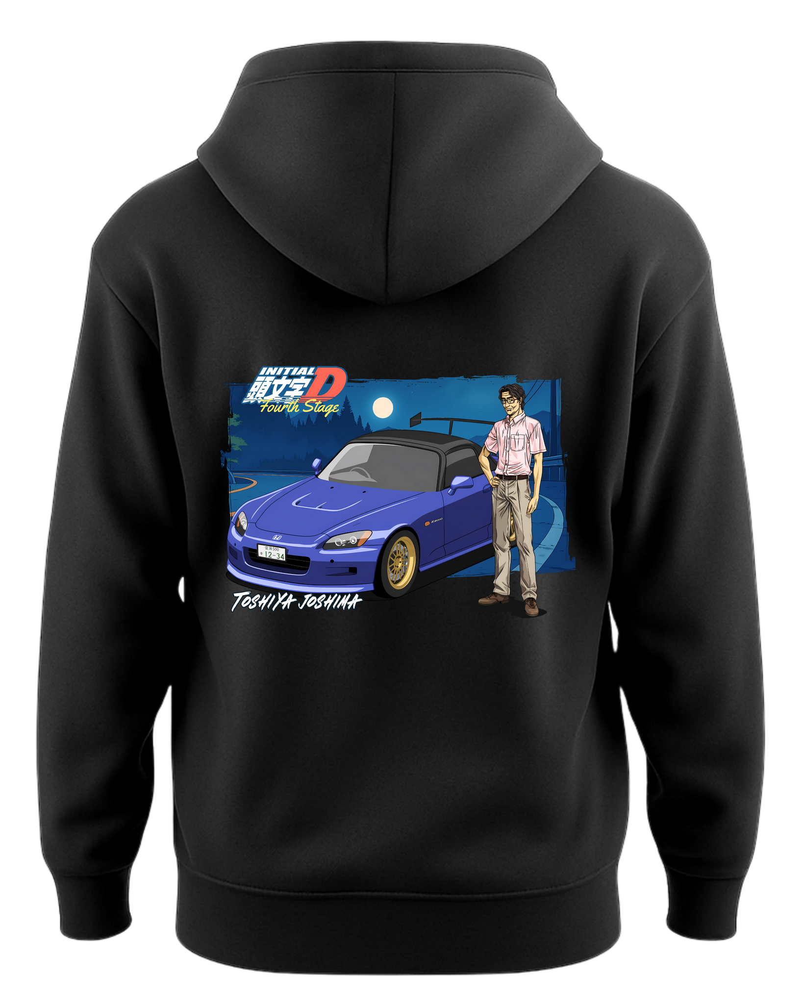 Printed in vivid anime-inspired detail, the back artwork showcases Joshima beside his deep-blue S2000 under a moonlit night, recreating one of the most memorable scenes from the series.