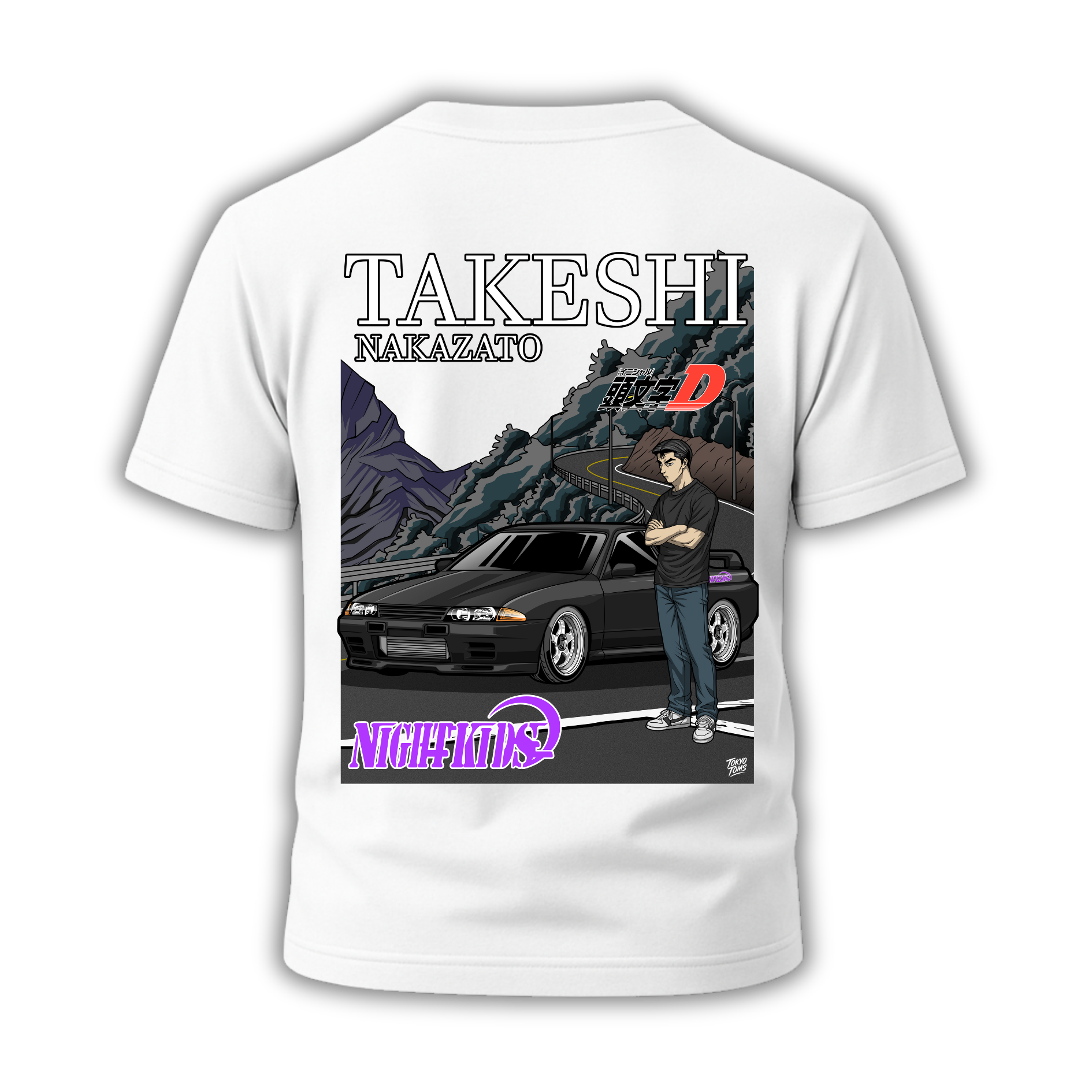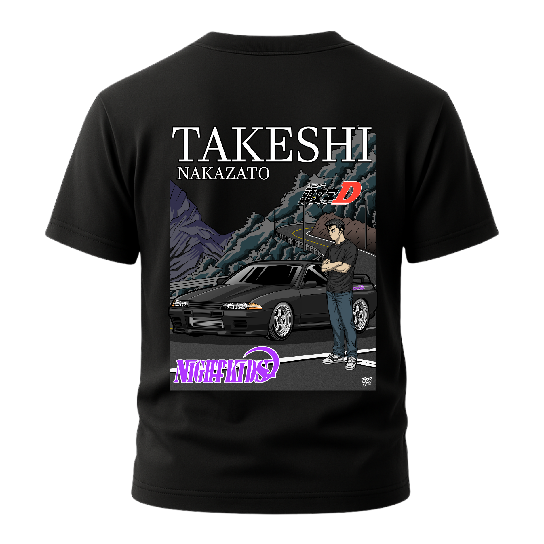 Celebrate the raw power of the "Godzilla" and the heavy-hitting leadership of the Myogi NightKids with the Tokyo Toms Takeshi Nakazato Edition Skyline GT-R R32 T-Shirt. Engineered for true Initial D fans, this piece pays tribute to the legendary BNR32—the all-wheel-drive monster that brought the "legend of invincibility" to the mountain passes of Gunma.