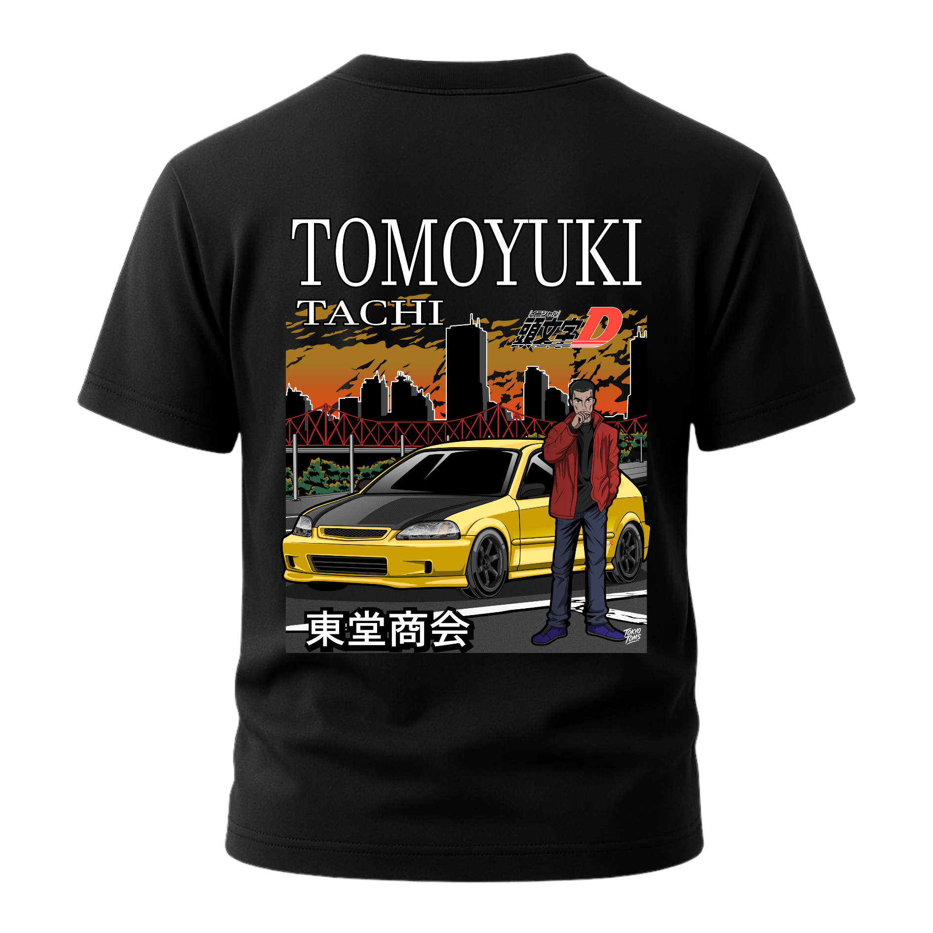 Celebrate the pinnacle of circuit-bred precision and the "Pro-Racer" spirit with the Tokyo Toms Tomoyuki Tachi Edition Civic Type R T-Shirt. Engineered for true Initial D fans, this piece pays tribute to the ultimate FF (Front-Engine, Front-Wheel Drive) weapon—the Todo School demo car that pushed Takumi Fujiwara to his absolute limit.
