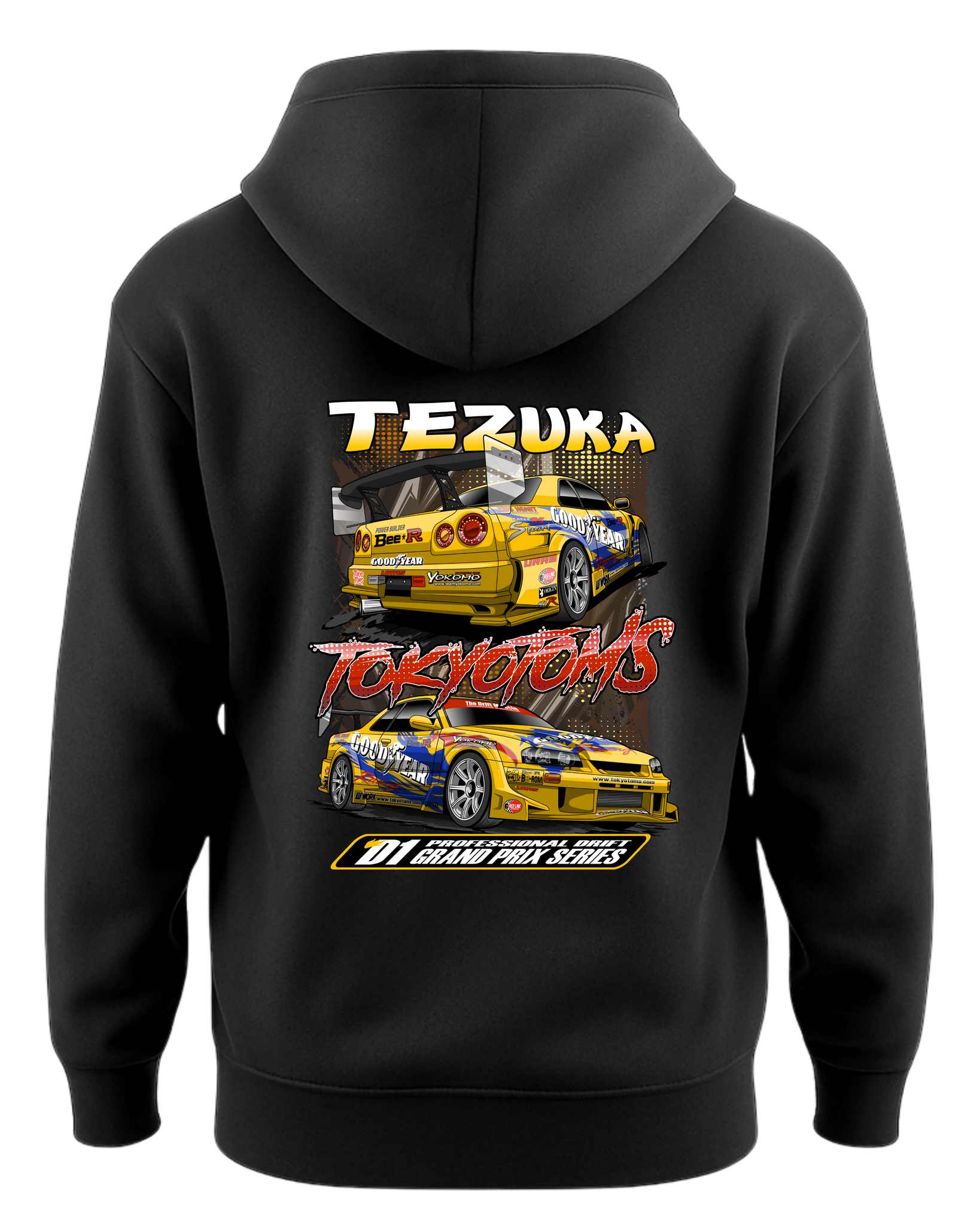 Whether you’ve followed Tezuka since the early D1 days or simply love the raw, aggressive style of a competition-built R34, this hoodie is a must-have for any JDM fan.