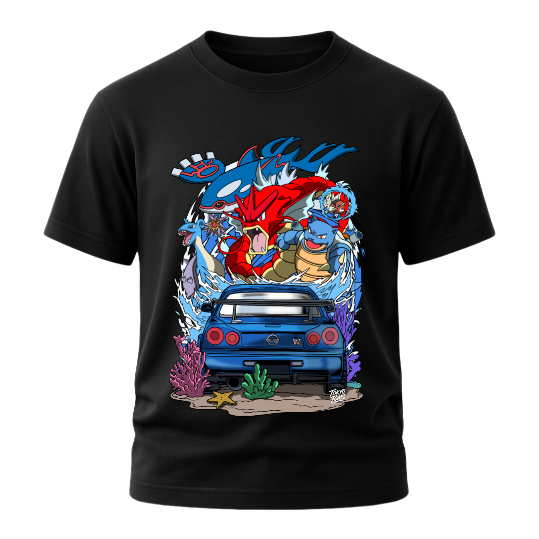 Featuring a dynamic ocean-themed design paired with one of the most revered Japanese sports cars ever built, this piece captures the unmistakable presence of the R34 while channeling the energy, imagination, and individuality that define modern car culture.