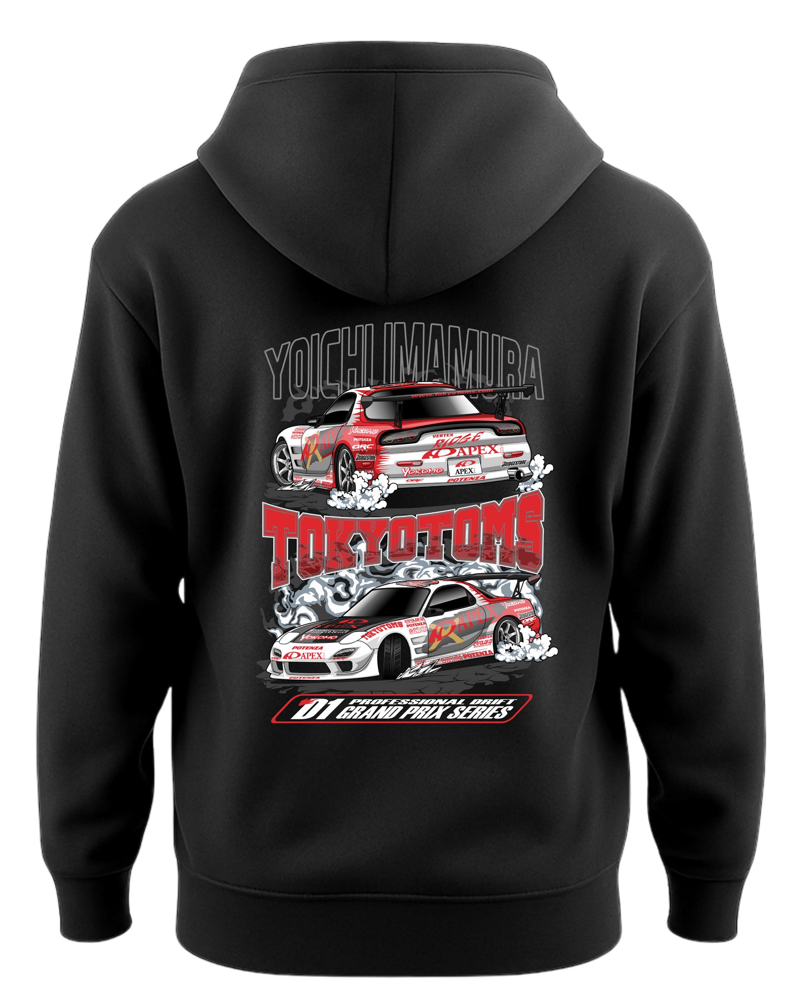 Celebrate one of the most legendary drivers in D1 Grand Prix history with the Yoichi Imamura RX-7 Drift Hoodie by Tokyo Toms.