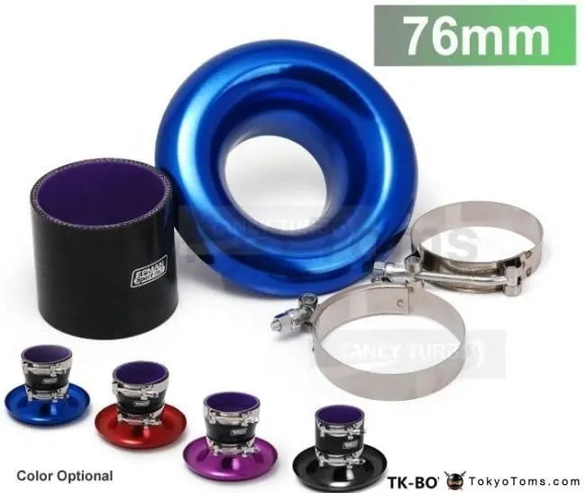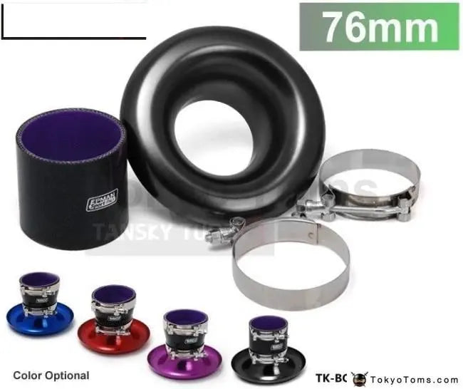 Jdm Universal Aluminum Intake Inlet Velocity Stack + Clamps+Silicone hose TK-BOV1009DDLB-76