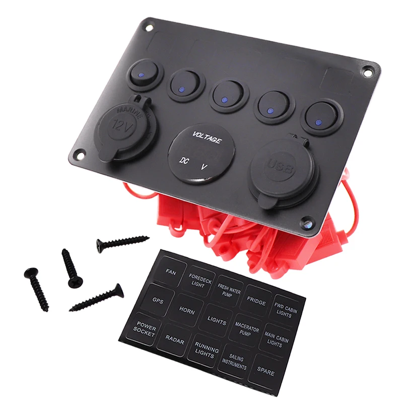 12V Combination Digital Voltmeter Dual USB Port Car LED Rocker Switch Panel