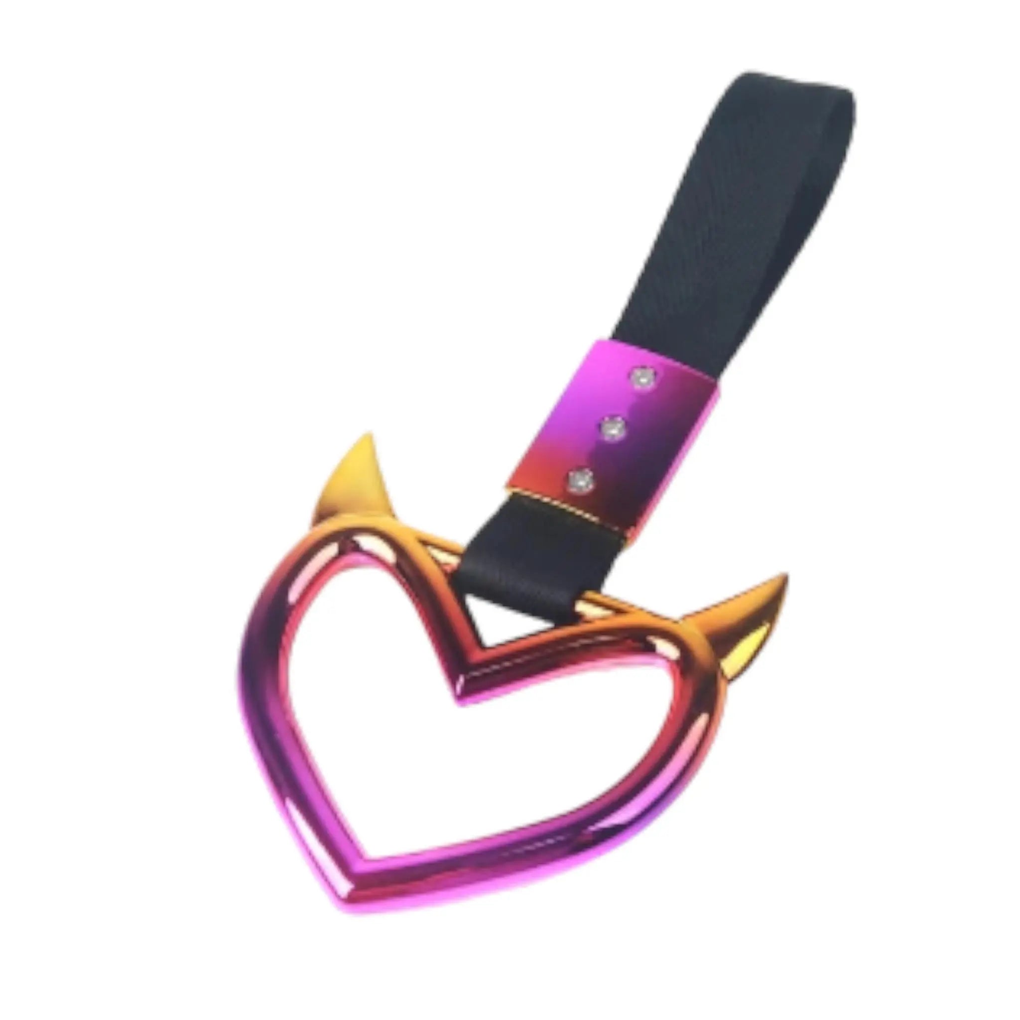 The meaning of Tsurikawa or JDM Train Handle "hang ring" is essentially a hand strap people use to hang on to when riding the bus or subway standing. The JDM Tsurikawa eventually became a sign of rebellion used by members of the Bosozoku. Tsurikawa rings come in shape of a circle or heart Japanese subway handle.