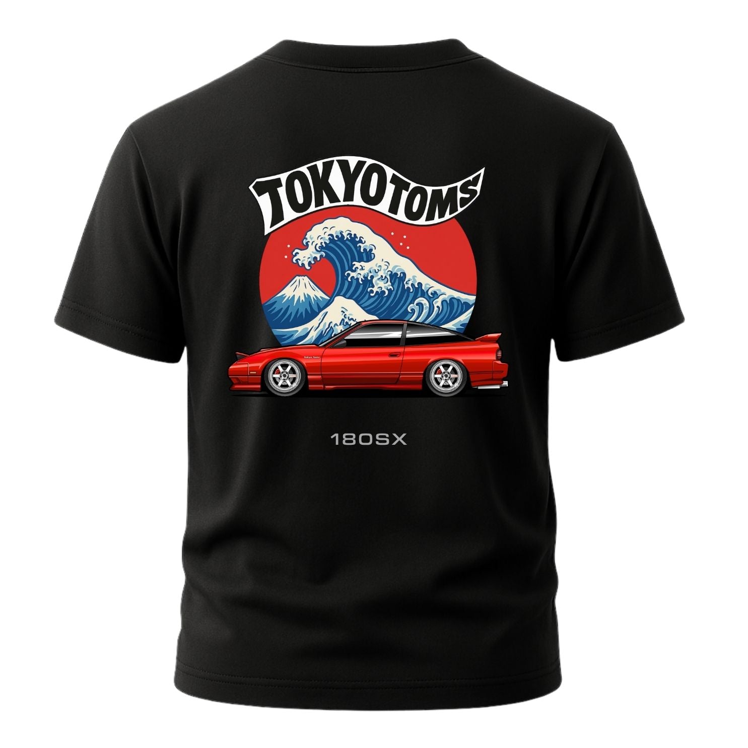Celebrate JDM heritage with the Tokyo Toms Nissan 180SX Wave T-Shirt. Featuring a bold Nissan 180SX set against Japan’s iconic Great Wave and rising sun backdrop, this shirt pays tribute to the turbocharged S13 legend that defined 90s drifting with its SR20DET and agile chassis. The “Tokyo Toms” logo arches proudly above, with the tagline Fueled by Passion, Born in Tokyo underscoring the design.