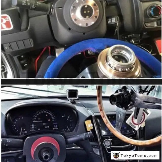 The quick release hub is compatible with 6-hole steering wheel hub kit. Fit all types of steering wheel and aftermarket boss kit.