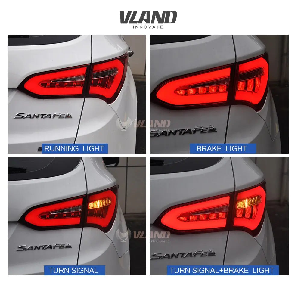 VLAND Led Tail Lights For Hyundai Santa Fe 2013-2015 Lens Rear Lamp Assembly Custom